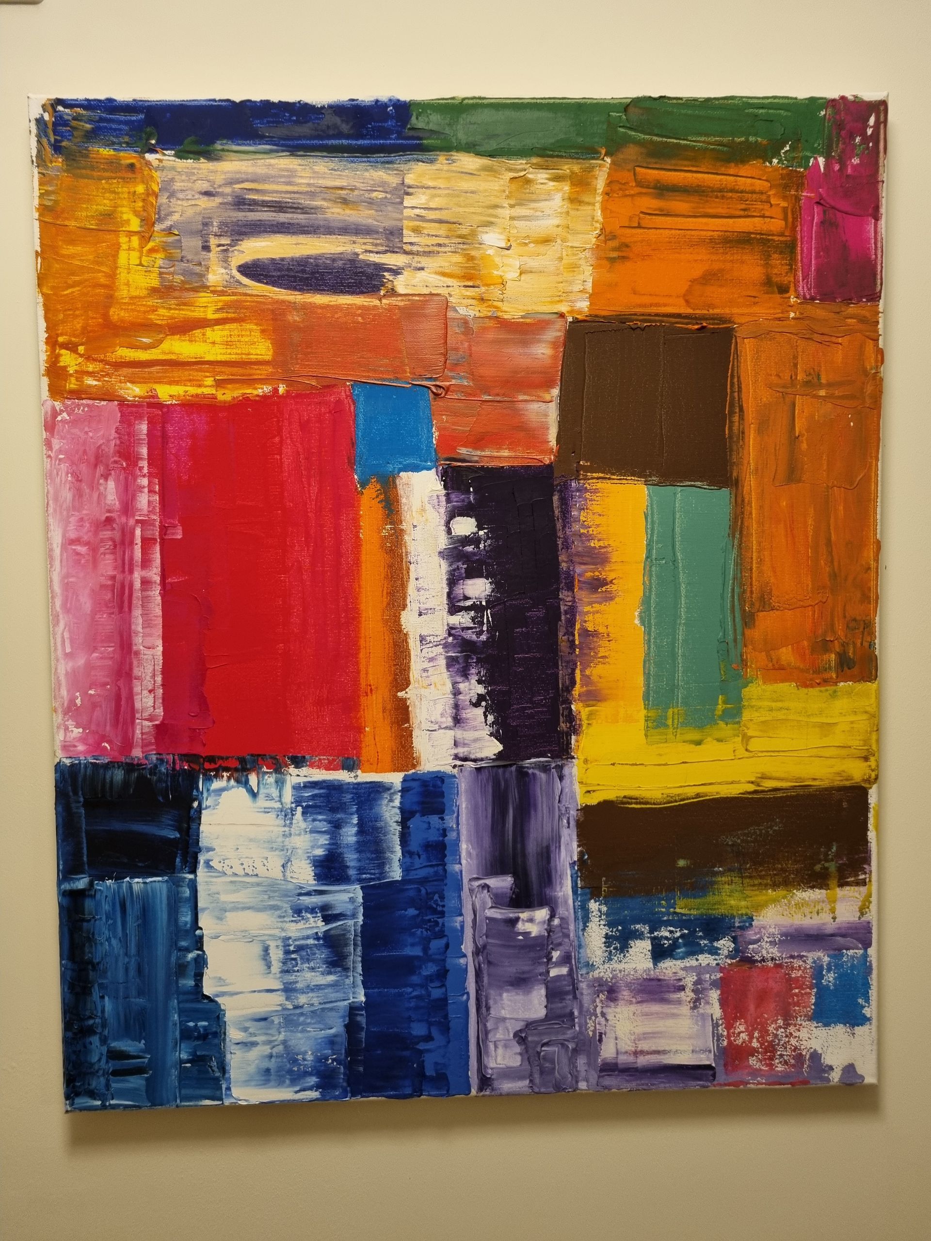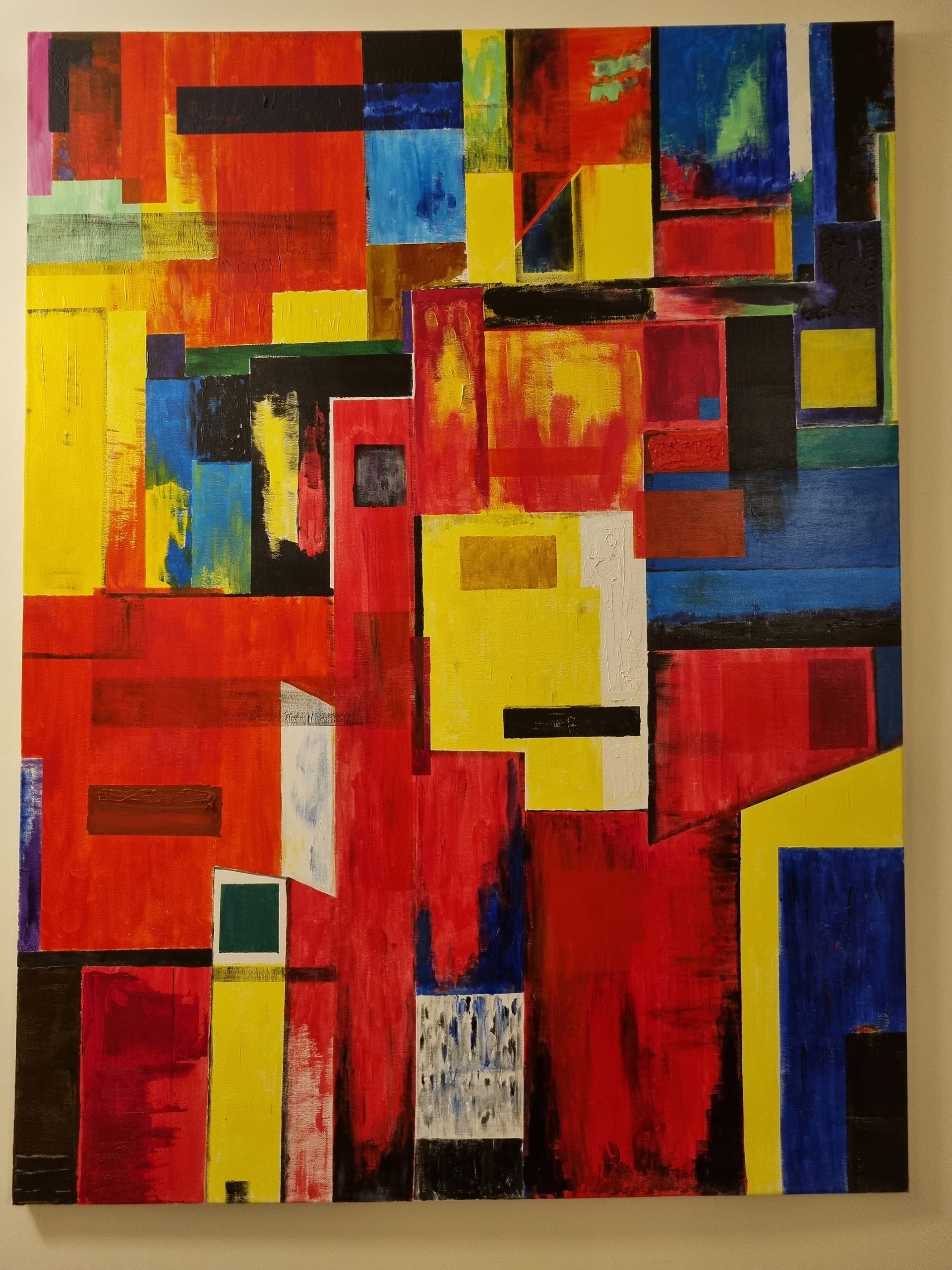 One off art to hopefully lift any room. Oil and acrylic. Lock down opened door to try painting. May not be to everyones taste but hopefully someone will enjoy as need the space!